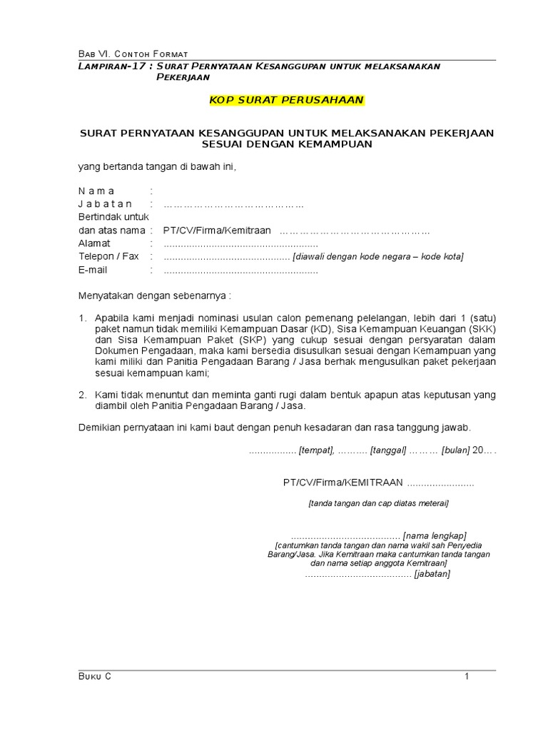 Tetapi meskipun demikian, tidak semua surat bisa dikirim langsung dengan email. Surat pernyataan kesanggupan adalah surat yang dibuat seseorang untuk menerangkan bahwasannya dia sanggup dan bersedia untuk melakukan sesuatu yang telah tertulis dalam surat kesanggupan tersebut. Banda aceh, 10 maret 2015 yang membuat pernyataan, materai 6000 ikhsan. Namun, terdapat resiko yang harus siap dijalani oleh si pembuat surat berdasarkan kesanggupannya jika terdapat. Perbedaan atau disputepada perjanjian ini akan diselesaikan secara musyawarah dan kekeluargaan.